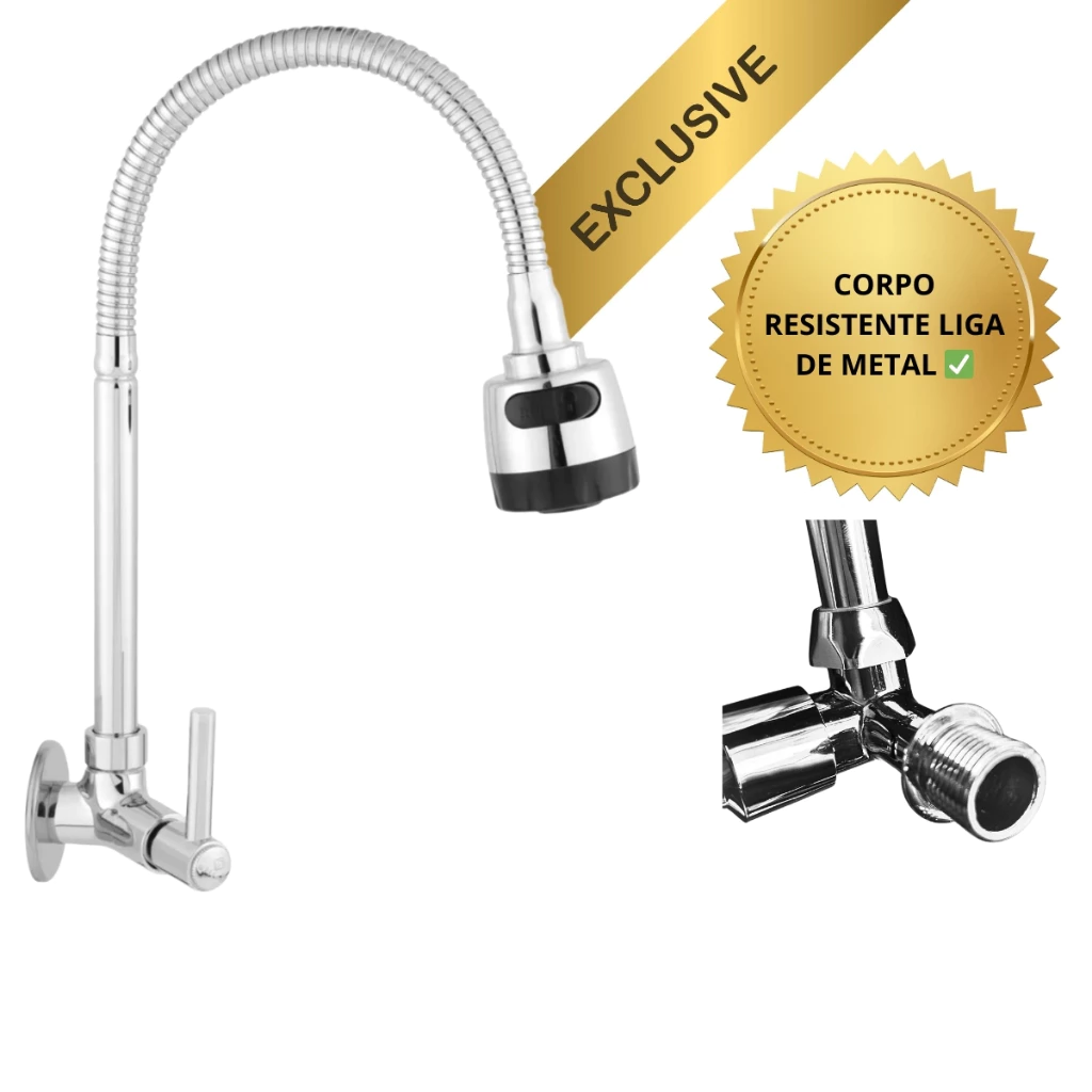 A Torneira de Cozinha com Saída Dupla e Rotação 360º combina design moderno, robustez e funcionalidade, sendo ideal para cozinhas residenciais ou industriais. Projetada para oferecer praticidade no dia a dia, possui dois modos de saída de água: tipo chuveiro e coluna d’água.